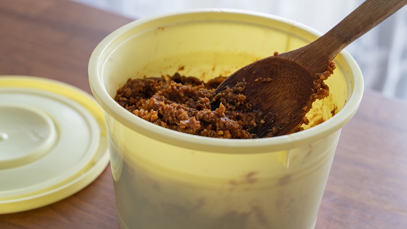 原料としては大豆や米麹(こめこうじ)、塩が必要になりますが、乾燥米麹を備蓄しておくことで1年程経った後に味噌を仕込むことができます。