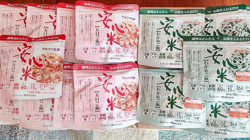 こちらで取り扱っている商品は、アルファー食品の安心米と尾西食品のアルファ米の一部セット(主に50袋または15袋)に限定されますが、5年以上の賞味期限が保証されており、公式オンラインストアと比較しても、かなり安く購入できる商品が見つかります。