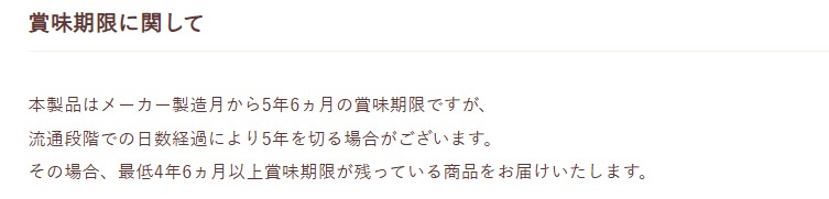 そして後半では、手元に届くアルファ化米の賞味期限が5年以上を保証する店舗を紹介します。