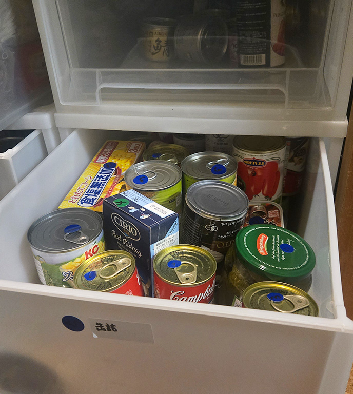 プラスチック製のケースに、缶詰のような重量物をぎっしり入れてしまうと、その重みで引き出しや枠が歪んだり、最悪の場合は割れたりする恐れがあります。わが家でも、重みで引き出しがスムーズに開かなくなり、ケース1つをダメにしてしまいました
