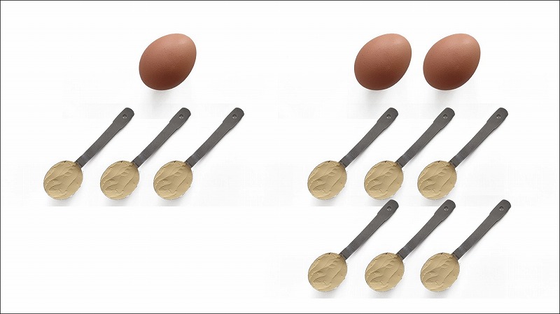 しかしこの1:3という分量割合は、通常の卵と同じ水分含量にするための比率であり、家庭料理をおいしく作るための分量とは異なります