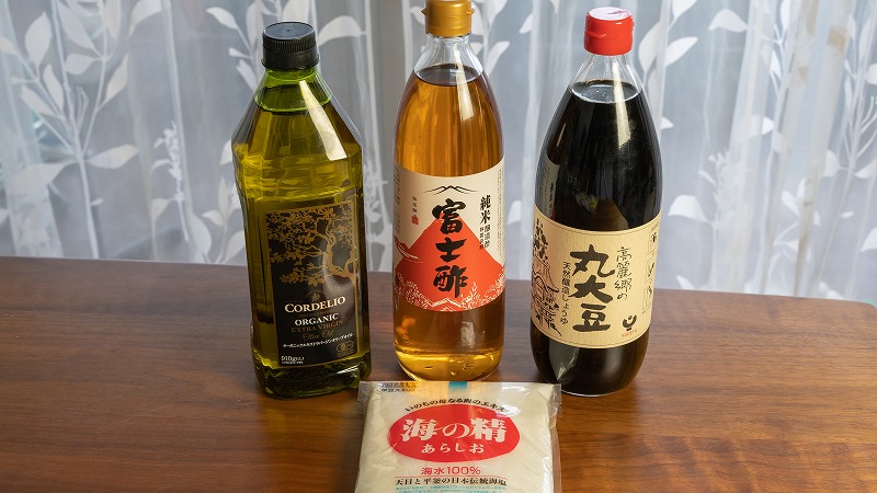 ・食品を漬けるための調味料(酢・醤油・オリーブオイル・砂糖・塩)