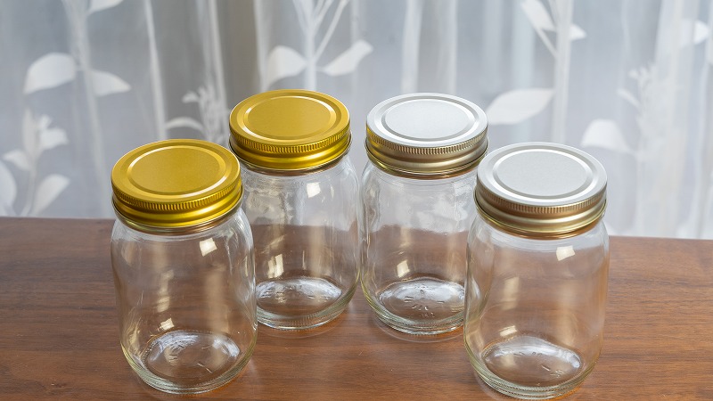 金属のふたをひねるように閉めるこのタイプの瓶は熱湯で消毒する煮沸消毒(たっぷりの熱闘の中に最低5分は煮沸)が可能です。