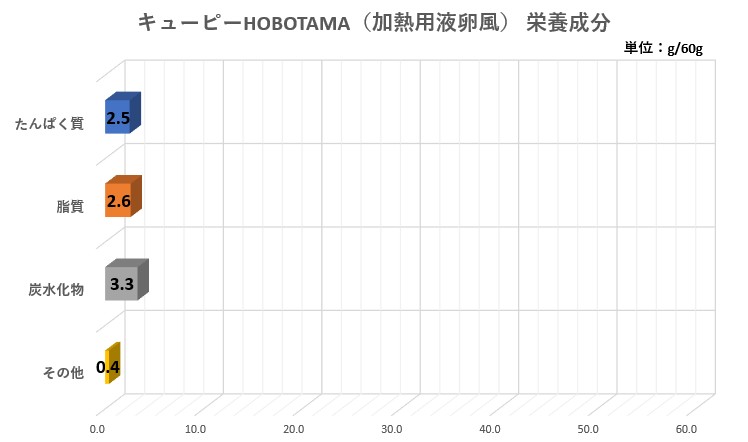 ※kewpie WEBサイト 商品情報 GREEN KEWPIE HOBOTAMA (加熱用液卵風)の数字を元にグラフ化