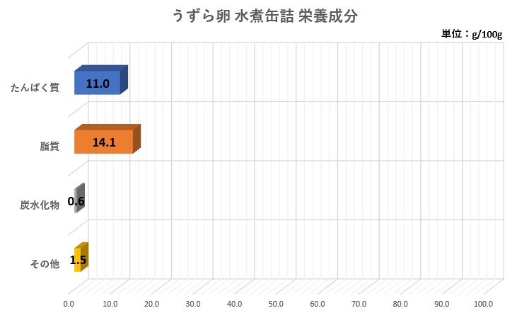 次にうずらの卵(水煮缶詰)の栄養成分を比較します。